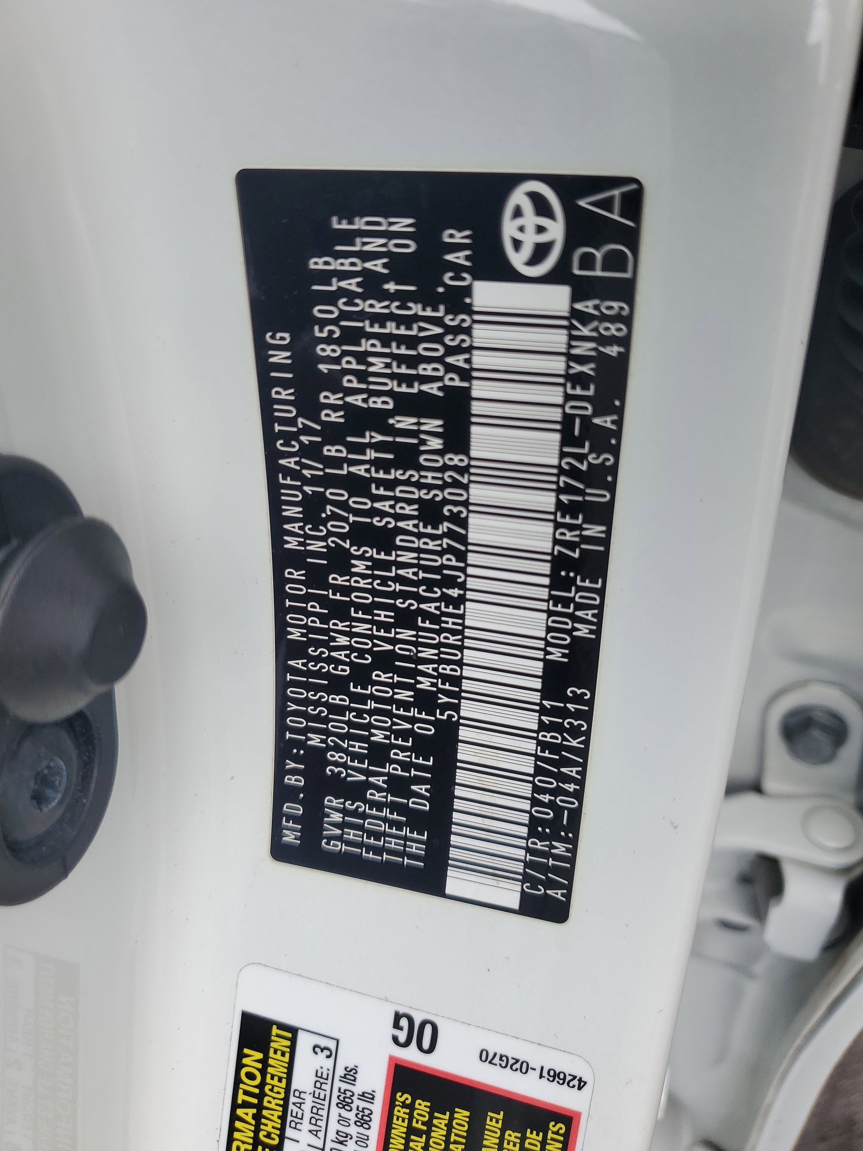 - Vehicle Name: Toyota Corolla