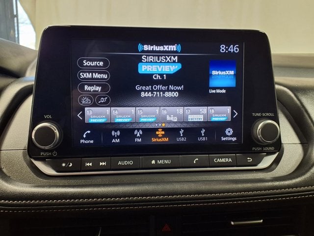 This vehicle comes equipped with: AWD, 4-Wheel Disc Brakes, 5.676 Axle Ratio, 6 Speakers, ABS brakes, Air Conditioning, Alloy wheels, AM/FM radio: SiriusXM, Auto High-beam Headlights, Automatic temperature control, Brake assist, Bumpers: body-color, Cloth Seat Trim w/Patterned Inserts, Delay-off headlights, Driver door bin, Driver vanity mirror, Dual front impact airbags, Dual front side impact airbags, Electronic Stability Control, Emergency communication system: NissanConnect Services, First Aid Kit, Floor Mats w/1-Piece Cargo Area Protector, Four wheel independent suspension, Front anti-roll bar, Front Bucket Seats, Front Center Armrest, Front dual zone A/C, Front reading lights, Fully automatic headlights, Heated door mirrors, Illuminated entry, Knee airbag, Low tire pressure warning, NissanConnect featuring Apple CarPlay and Android Auto, Occupant sensing airbag, Outside temperature display, Overhead airbag, Overhead console, Panic alarm, Passenger door bin, Passenger vanity mirror, Power door mirrors, Power driver seat, Power Liftgate, Power steering, Power windows, Radio data system, Radio: AM/FM NissanConnect, Rear anti-roll bar, Rear Parking Sensors, Rear seat center armrest, Rear side impact airbag, Rear window defroster, Rear window wiper, Remote keyless entry, Speed control, Speed-Sensitive Wipers, Split folding rear seat, Spoiler, Steering wheel mounted audio controls, Tachometer, Telescoping steering wheel, Tilt steering wheel, Traction control, Trip computer, Variably intermittent wipers, and Wheels: 18 Dark Painted Machine Finished Alloy.
