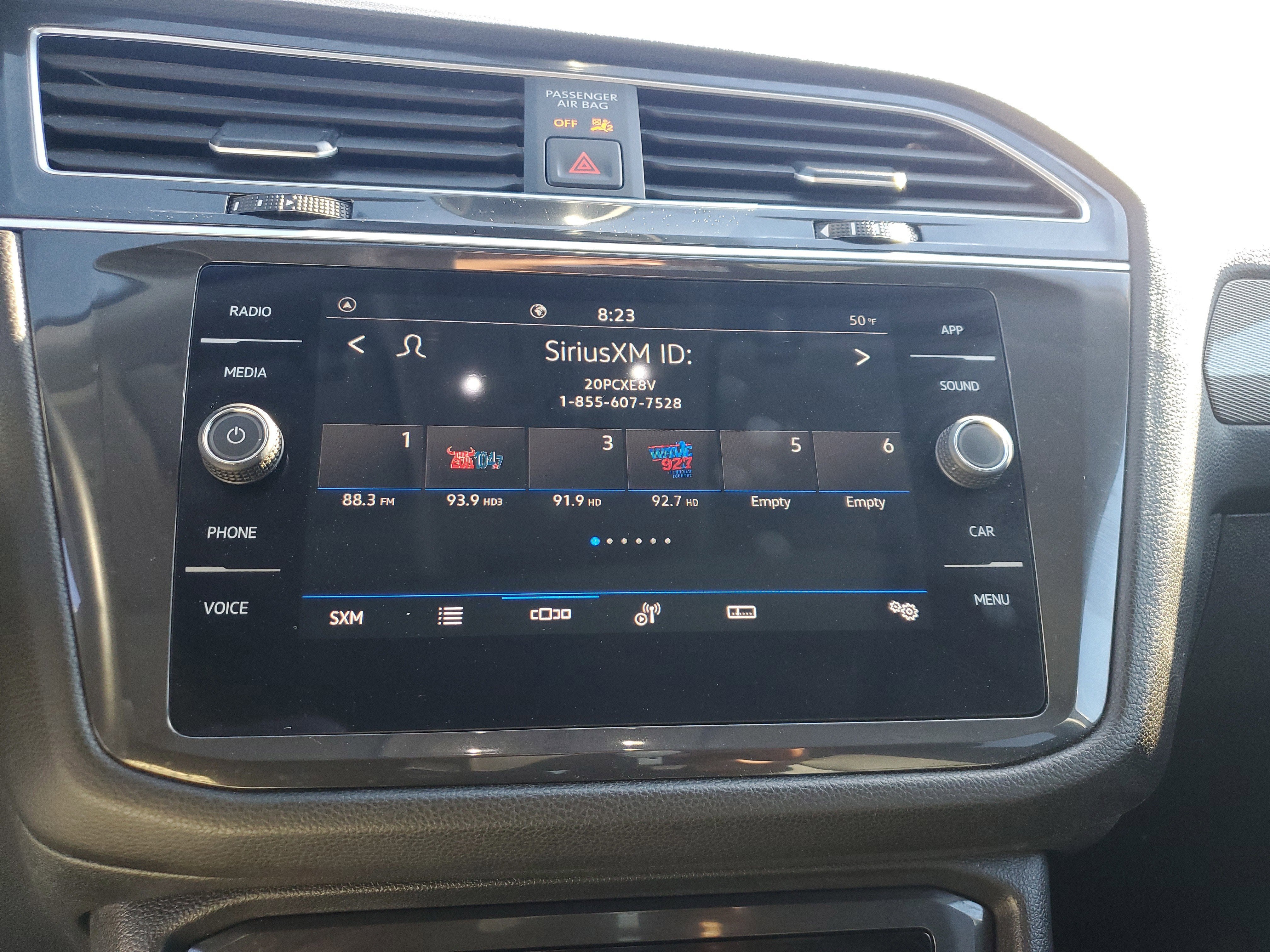 - Radio: MIB3 Composition Media AM/FM/HD -inc: 8" touchscreen, WMA/MP3/FLAC player w/USB-C, voice control, 6-speaker sound system, capability for in-vehicle 4G LTE enabled Wi-Fi (cellular data plan required; includes limited trial), capability for VW Car-Net services (capabilities for certain services vary; requires enrollment or subscription), Bluetooth® connectivity (for compatible devices), SiriusXM w/360L (w/3-month free trial subscription; 360L services require acceptance of Car-Net terms), App-Connect smartphone integration (w/Apple CarPlay, Android Auto and MirrorLink) via USB, Wireless App-Connect smartphone integration (for compatible devices) w/multi-phone pairing capability, 45W fast charging (for compatible mobile phones and accessories) via USB in first and second rows and Qi wireless inductive charger (for compatible mobile phones and accessories)